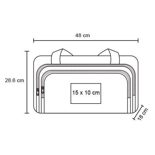 Maleta con 1 compartimento principal, 2 compartimentos frontales, zapatera, 1 compartimento lateral y asas.