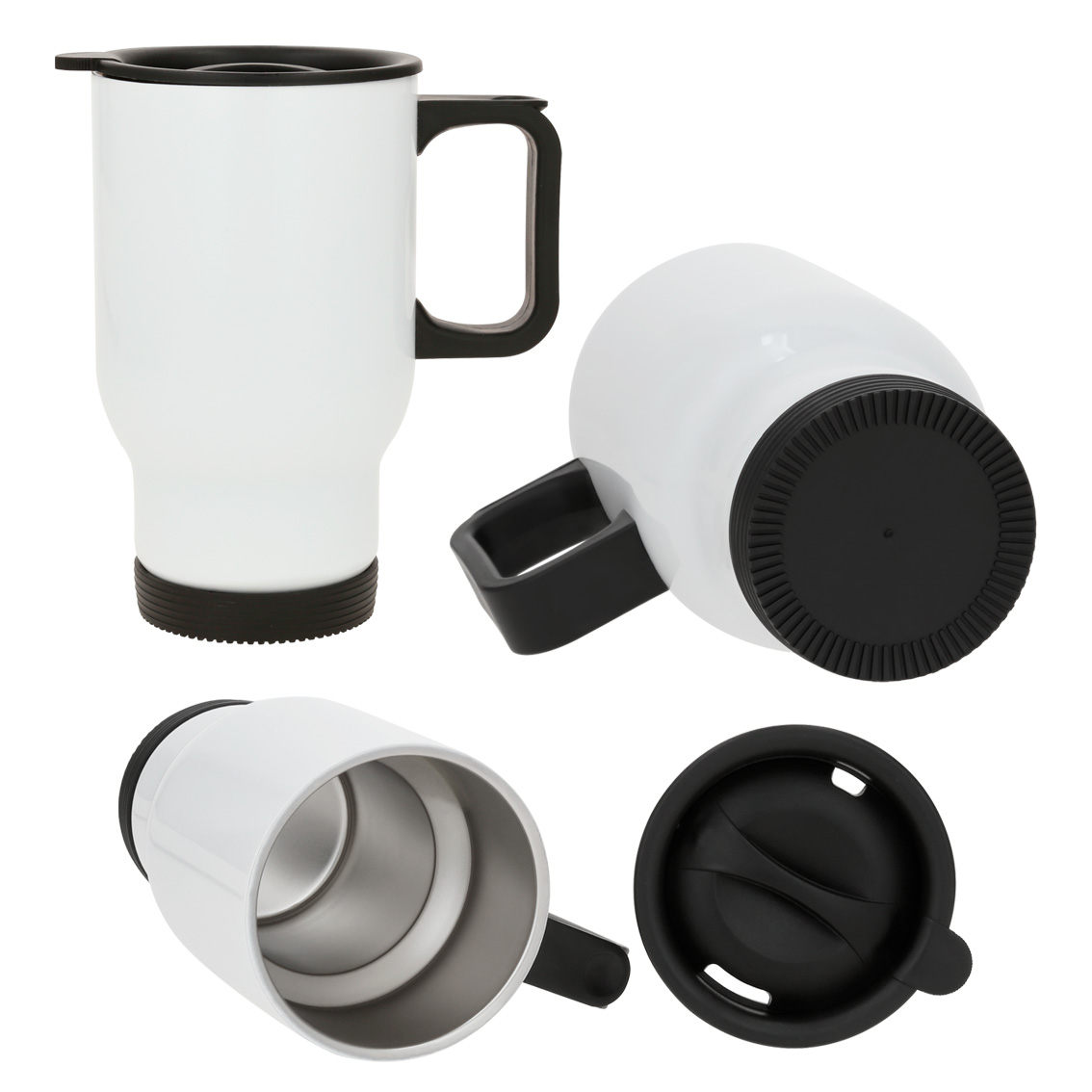 Termo de acero inoxidable sublimable con tapa de cierre a presión y seguro deslizable.