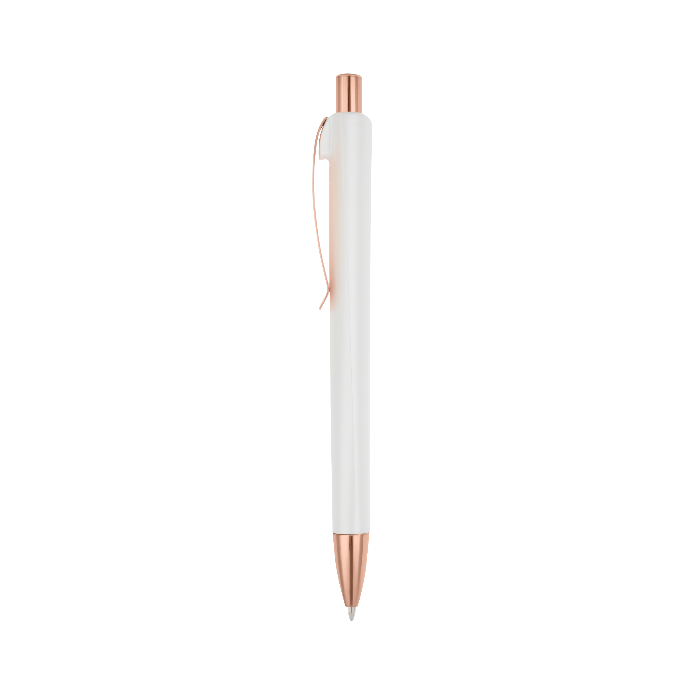 Bolígrafo de plástico con clip metálico y mecanismo de click.