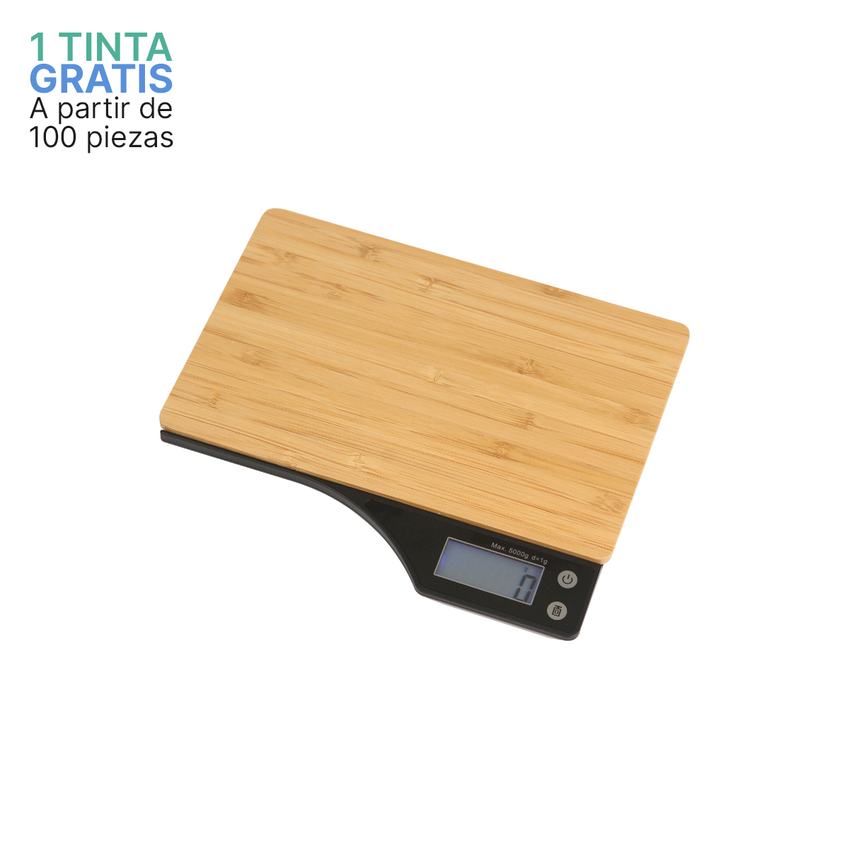 Báscula electrónica de cocina fabricada en bambú. Soporta un peso máximo de 5 kg. Incluye 2 baterías y caja de cartón. El diseño compacto de esta báscula de cocina es fácil de almacenar y transportar.