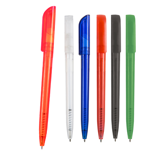 Bolígrafo de plástico traslúcido con mecanismo retráctil.