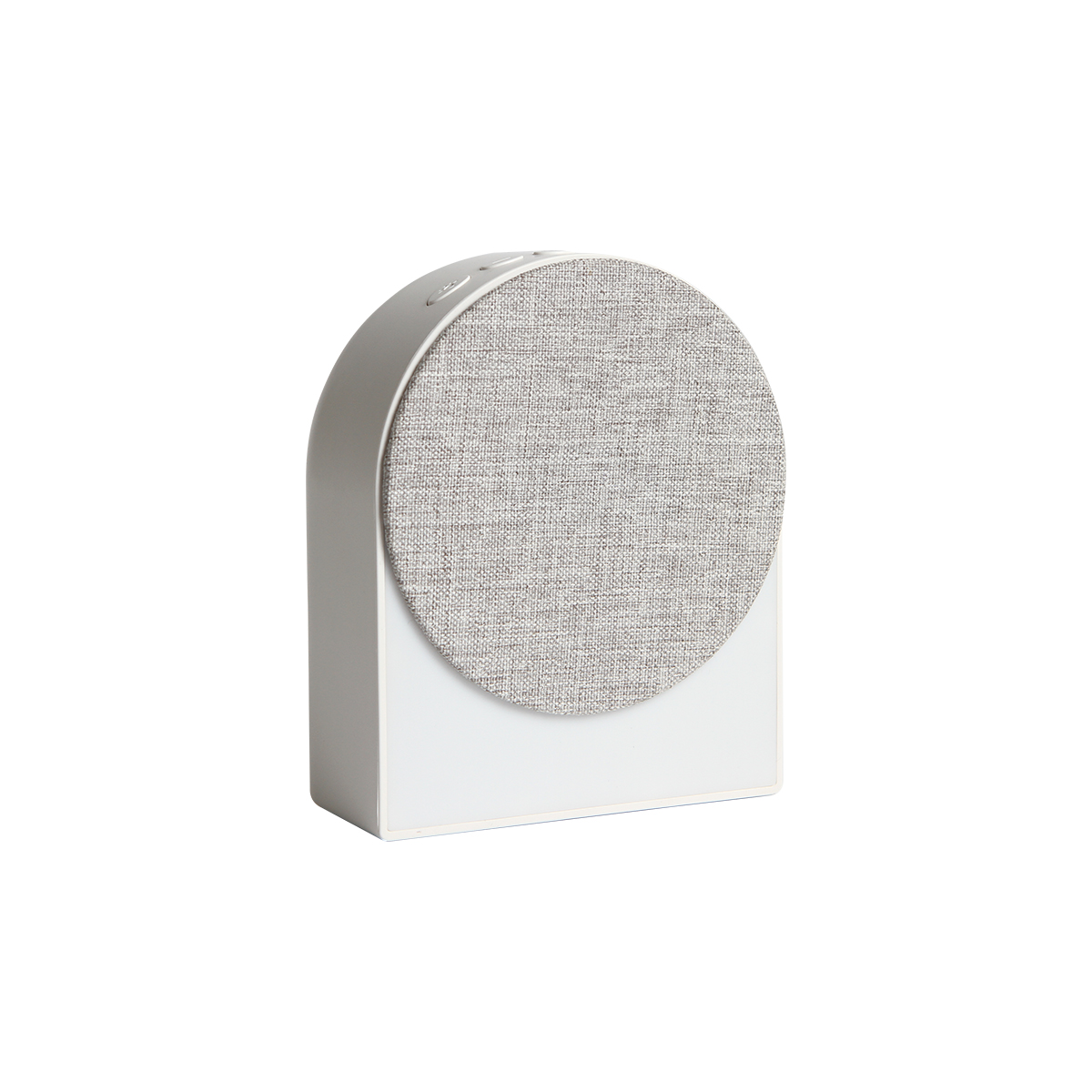 Bocina con conexión de sonido sin cables, con funciones de reloj, alarma, luz nocturna y ruido blanco. Diseño especial para casos de insomnio, cuenta con sonidos de descanso terapéutico predeterminados. Potencia de 3W y batería integrada de iones de litio.