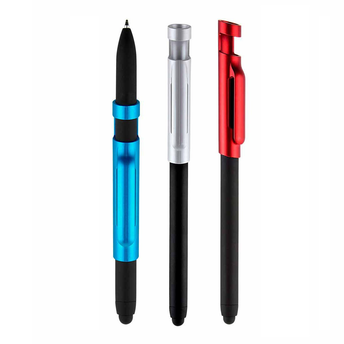 Bolígrafo con touch screen y base para smartphone. Terminado rubber.