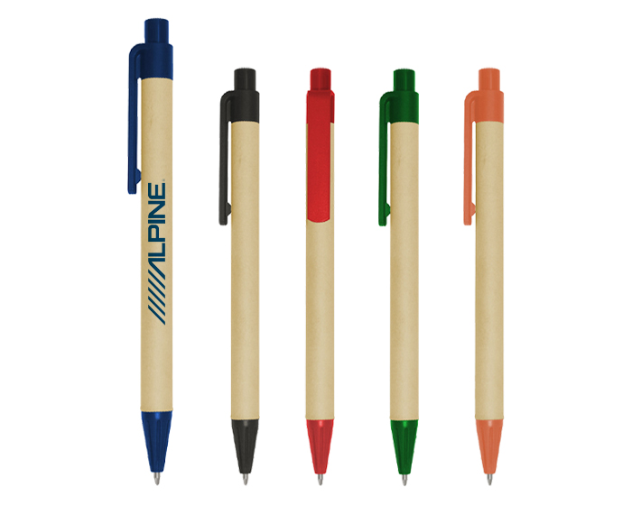 Bolígrafo de papel reciclado, clip y punta de plástico, mecanismo de click.