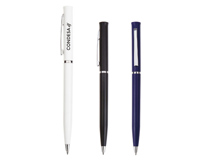 Bolígrafo plástico con terminado mate, con punta y clip en acabado metálico. Mecanismo retráctil.