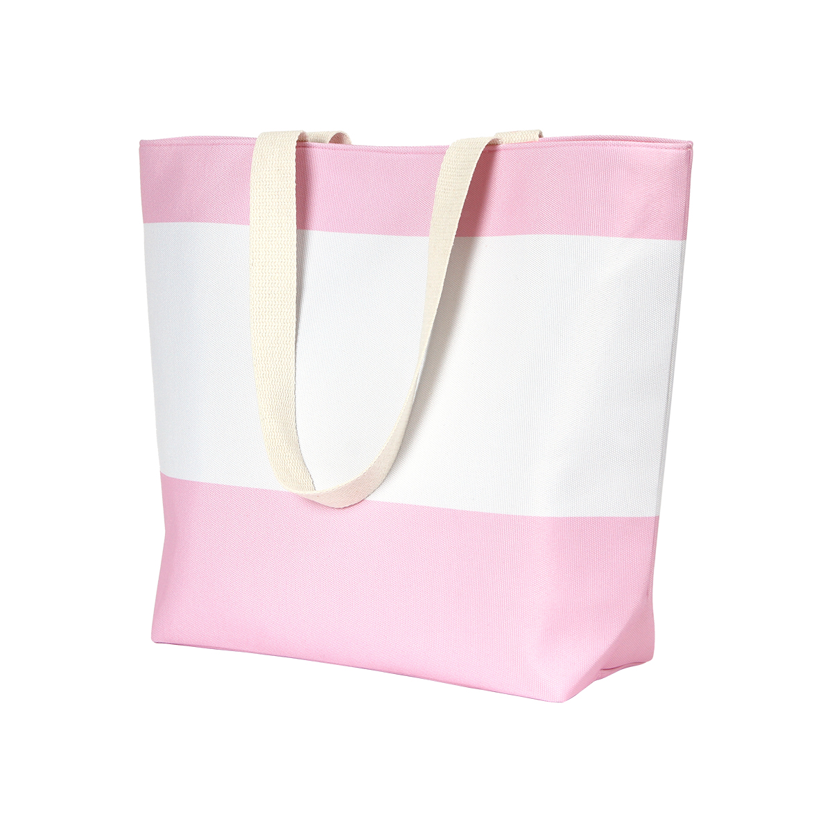 Bolsa de mano fabricada en tela de algodón y poliéster. Incluye dos asas y diseño a rayas. Su espacio y diseño son óptimos para guardar diversidad de objeto. Su diseño en colores primaverales le hace vistosa.