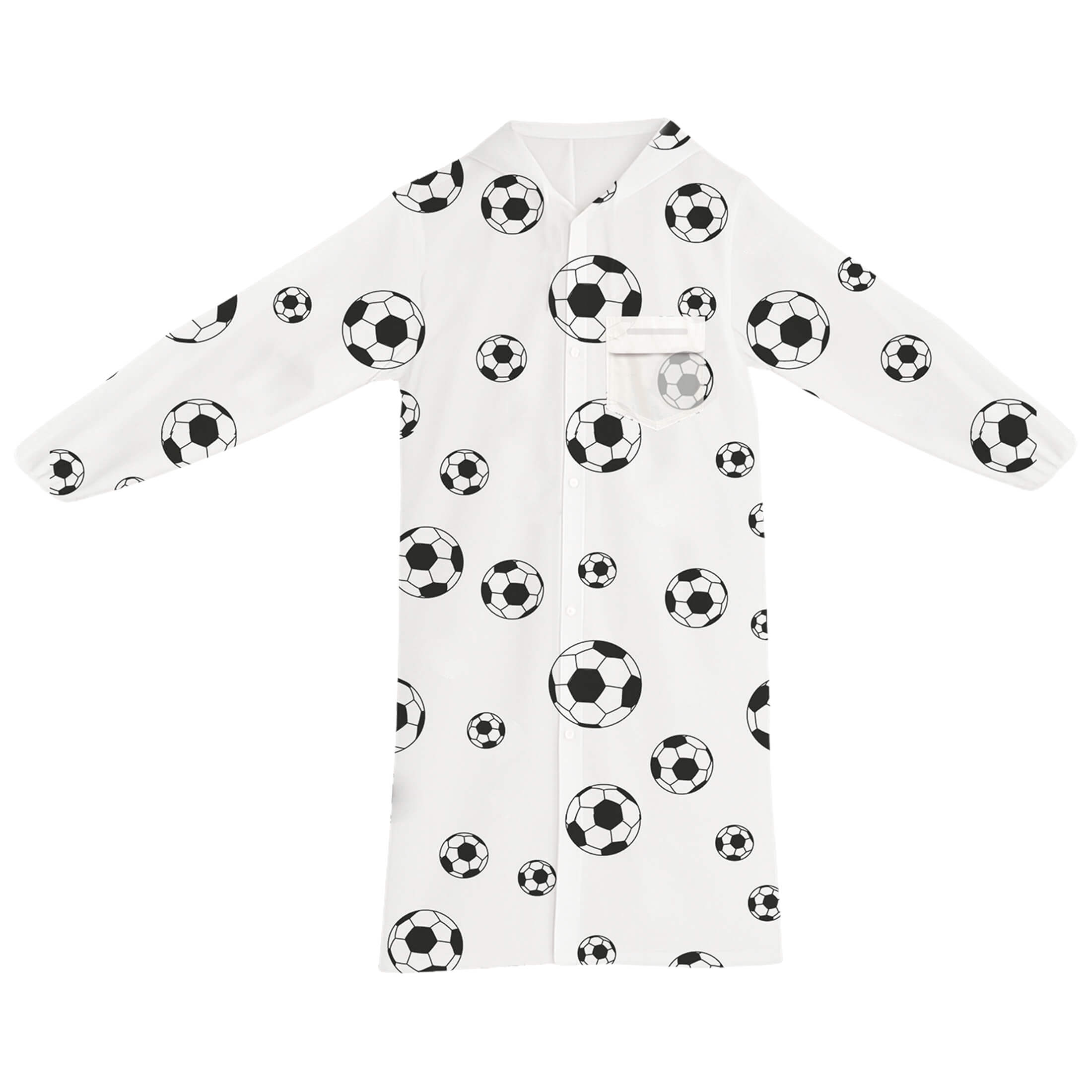 Impermeable con print de balones de soccer, con capucha y botones.
