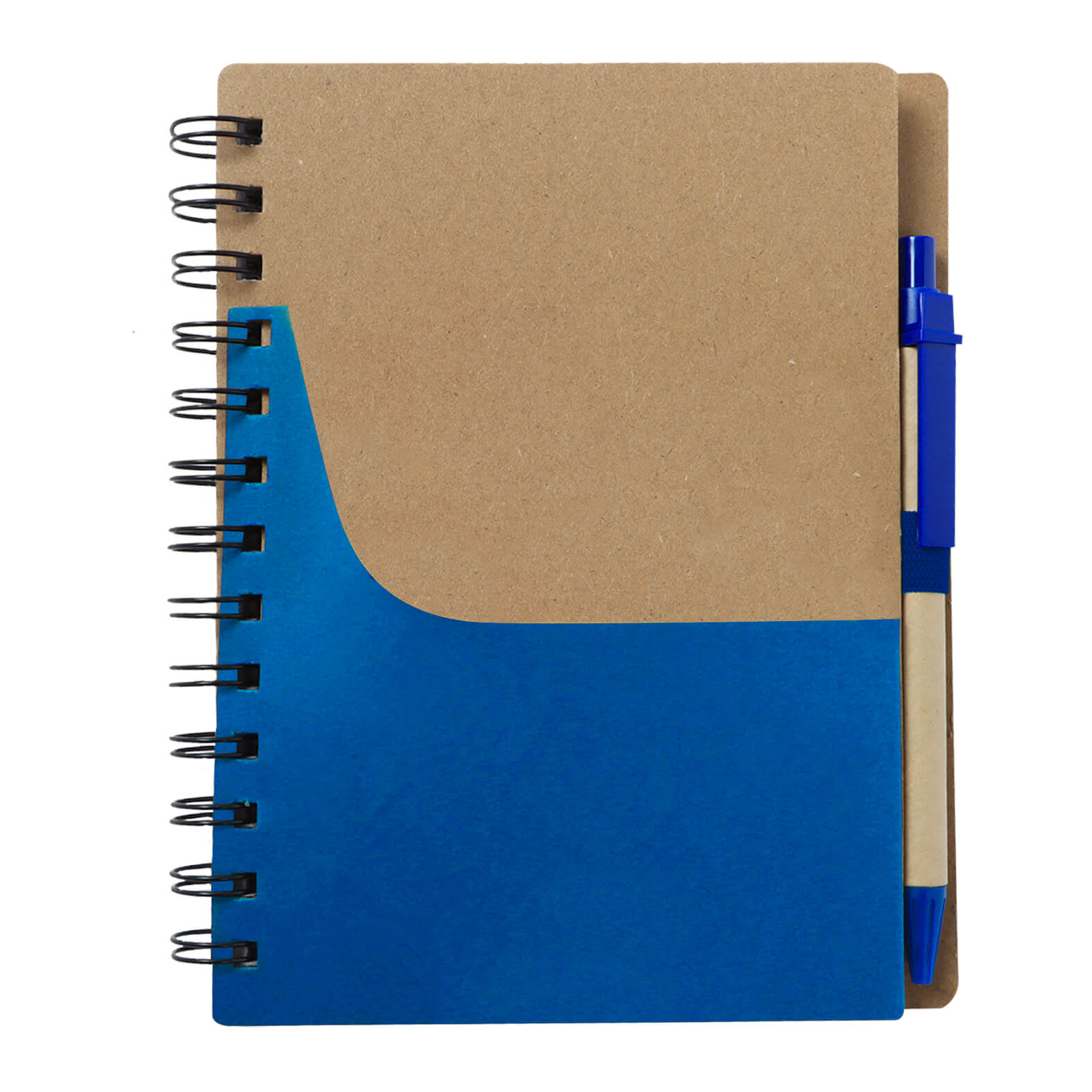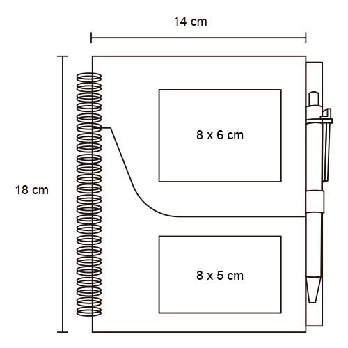 Libreta ecológica de cartón con espiral, sobre ranura porta tarjetas, pluma y 70 hojas de raya.