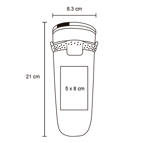 Termo con doble pared de acero inoxidable, insulado al vacío, acabado rugoso, tapa de cierre a presión y banda elástica.