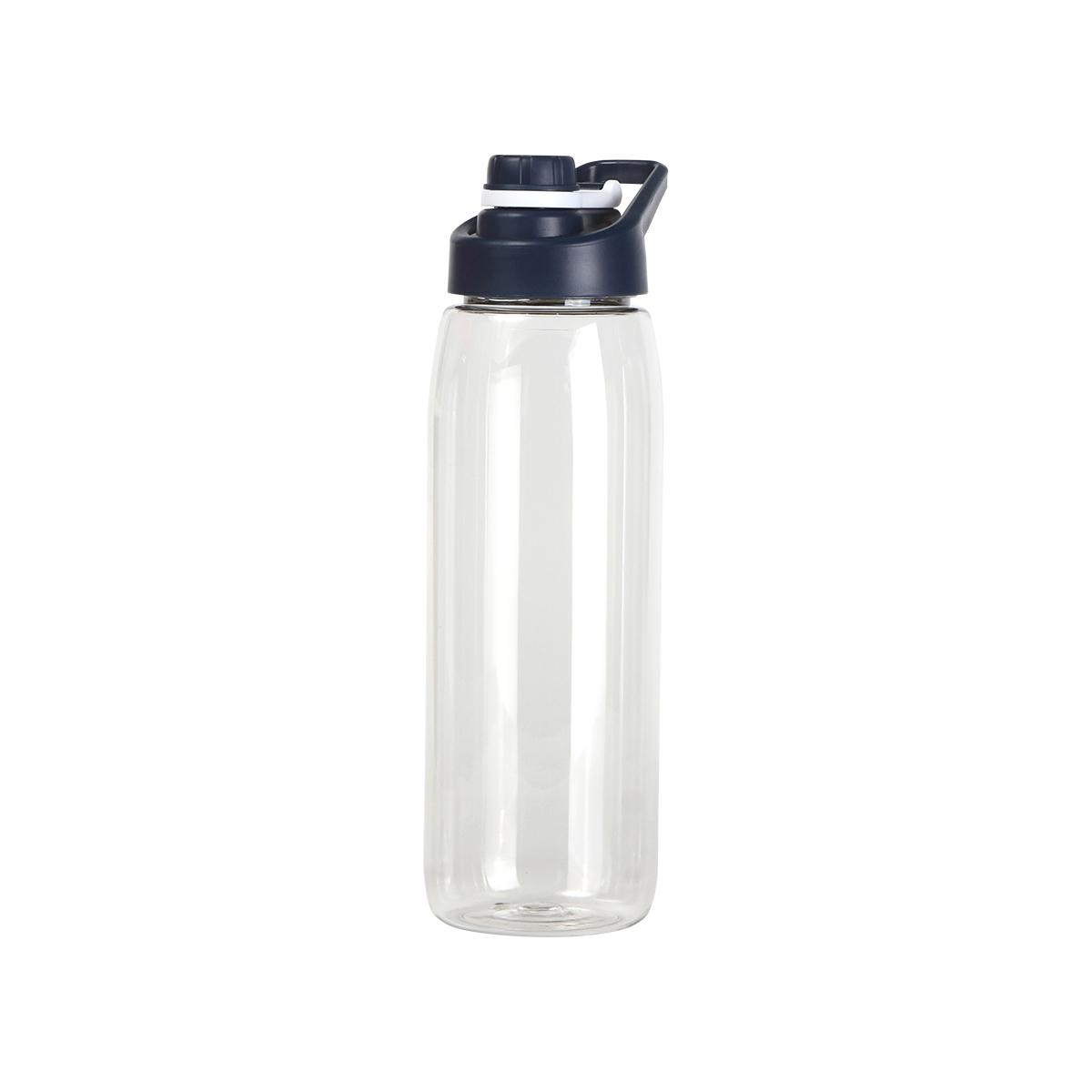 Botella deportiva para agua fabricada en PETG (poliéster de glicol) con tapa tipo rosca y agarradera fabricada en Polipropileno. Este material es resistente a impactos y no retiene olores ni sabores, lo que asegura que el agua se mantenga fresca y pura. Fabricada en materiales de grado alimenticio, no apto para microondas. Capacidad 860 ml.