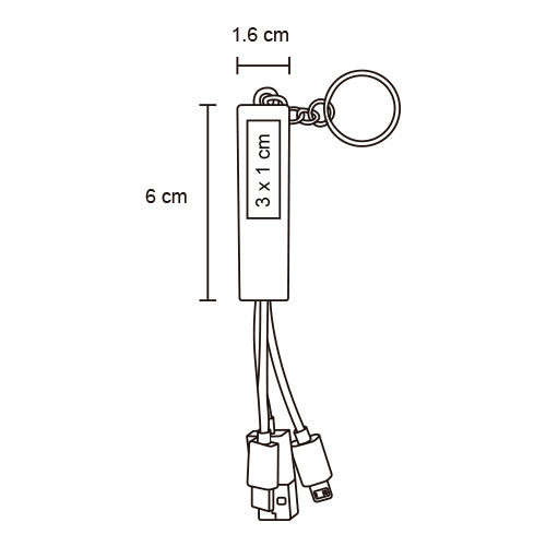 Cable multi USB 3 en 1 con luz y aro para llaves, incluye: 1 cable USB, 1 cable lightning y 1 cable tipo C.