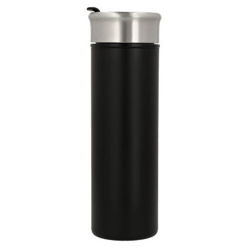 Termo de doble pared con interior de plástico y tapa enroscable a presión.