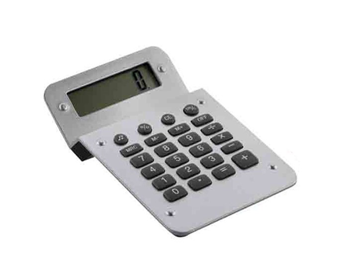 Calculadora rígida con botones de color. Con ángulo especial para mejor visibilidad de la pantalla. Batería incluida. Presentación: caja en color blanco.