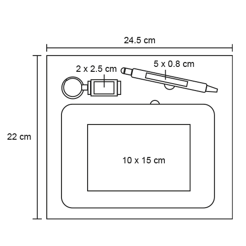Set ejecutivo que incluye: 1 libreta de bambú, 1 llavero metálico con bambú y 1 pluma de metal con acabado de bambú, goma touch screen y mecanismo de click.