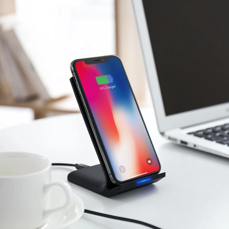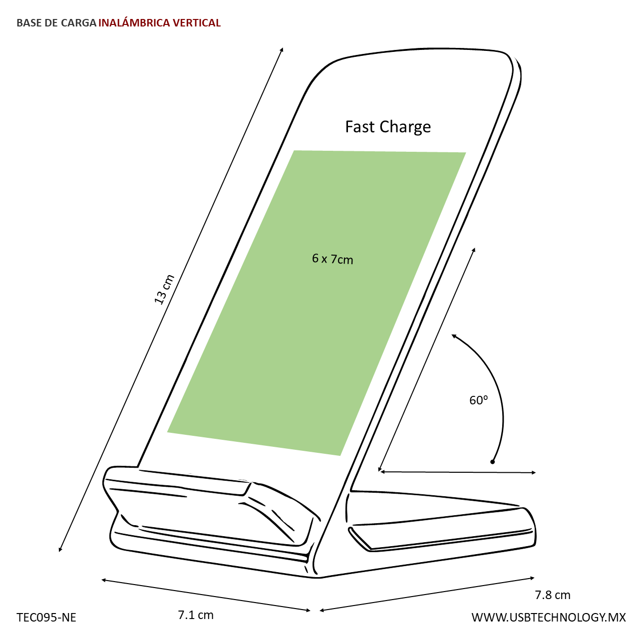 CARGADOR WIRELESS Cargador Inalámbrico de base inclinada y antiderrapante, cuenta con LED de aviso de carga. Incluye cable USB. *Parche QI se vende por separado.