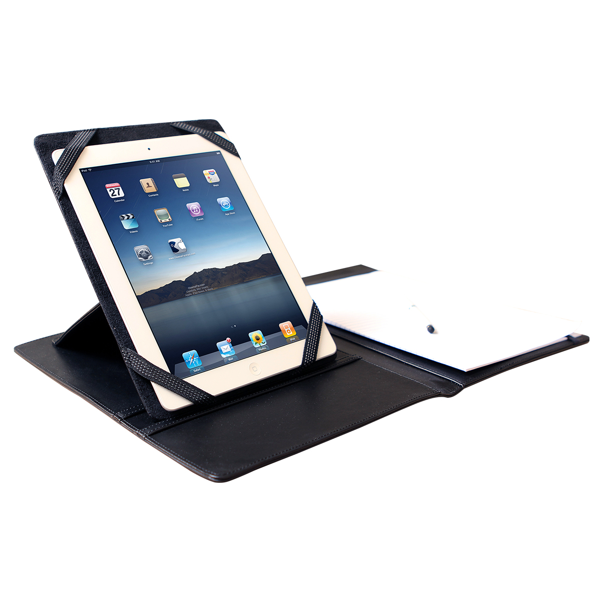 Carpeta con cubierta de curpiel, porta Tablet y block de 25 hojas rayadas tamaño carta.