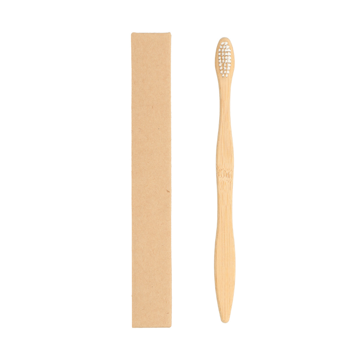 Cepillo dental con mango de bambú. Incluye caja de cartón.