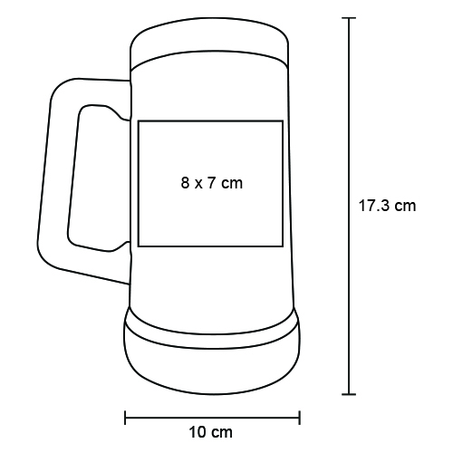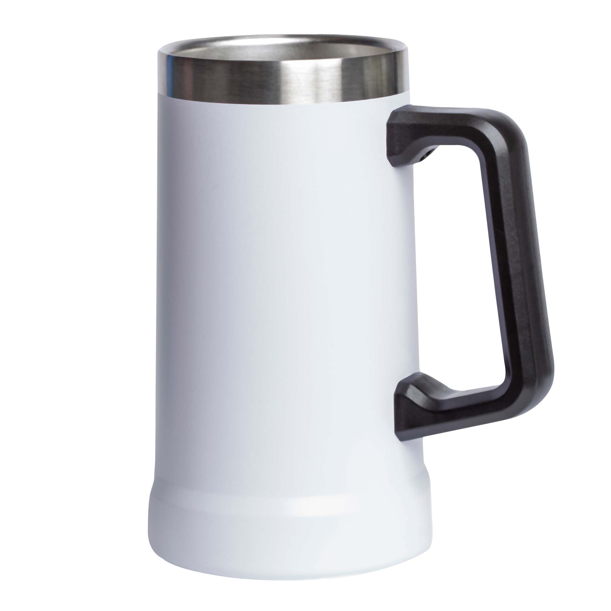 Tarro con doble pared de acero inoxidable, insulado al vacio y mango de plástico.