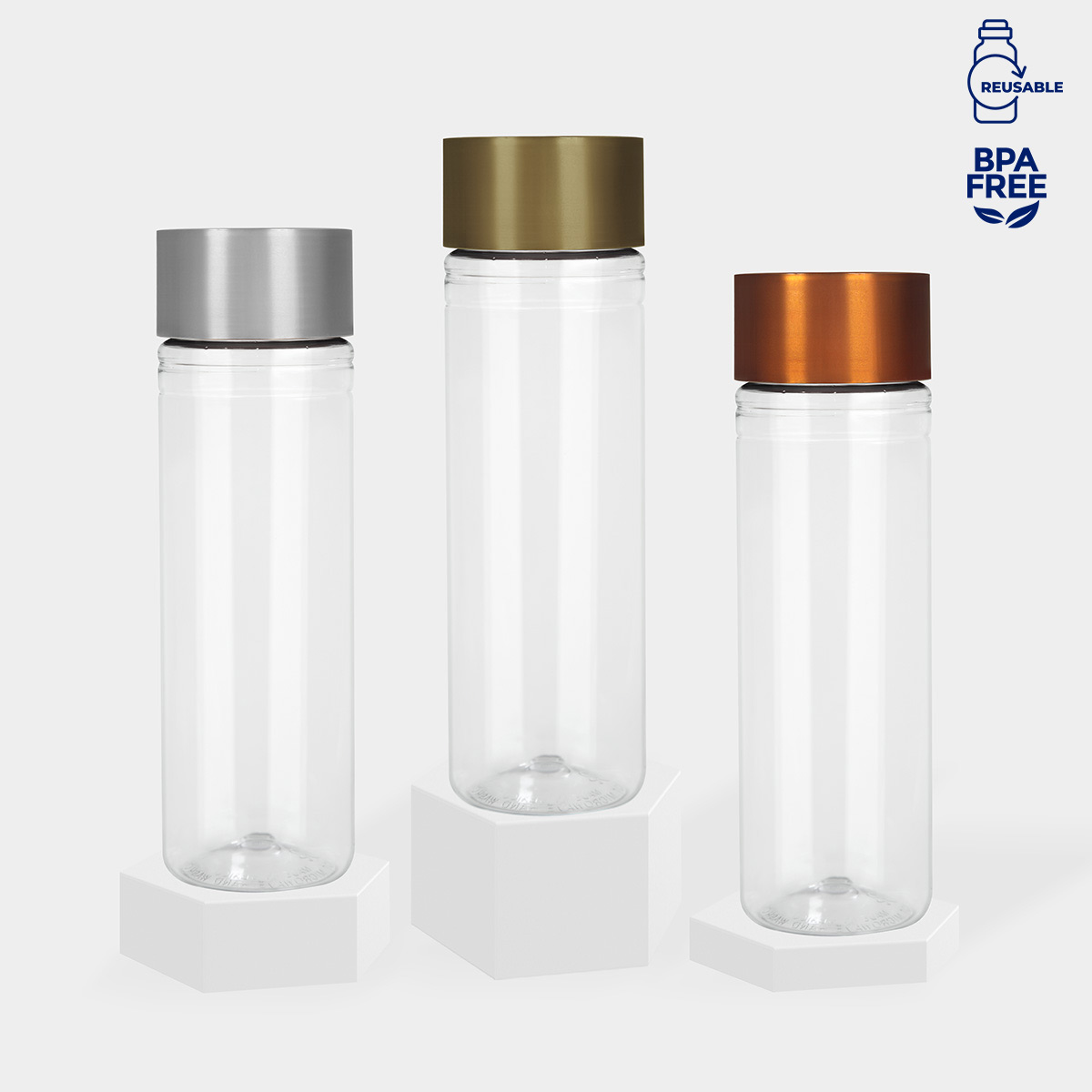 Tapa de color metalizado. Sistema de rosca twist-off que permite abrir y cerrar la tapa en un giro. Mantener el linner en el interior de la tapa en todo momento, se debe retirar hasta su uso final. Revisar que la tapa no esté cerrada completamente. No exponer el cilindro a temperaturas mayores a 40 °C durante su almacenamiento y transportación. Mantener en su empaque individual antes y después de su transformación. No apto para bebidas calientes. No introducir en microondas ni lavavajillas.