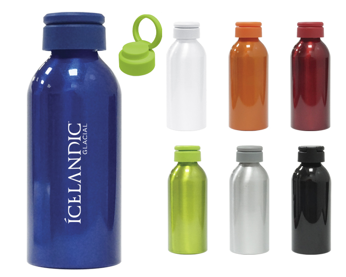 Cilindro de Aluminio con acabado metálico brillante con glitter, cuenta con práctica tapa de plástico con cierre de rosca y anillo abatible, que sirve como asa para su fácil transportación. CAP. 600 ml.