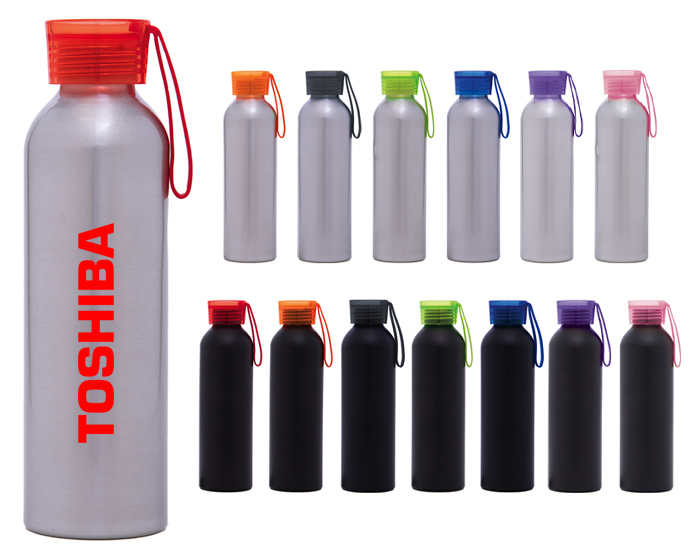 Cilindro metálico con boquilla de rosca. Tapa transparente en color con asa de silicón (Tapa modelo A2681 se vende por separado) CAP. 600 ml.