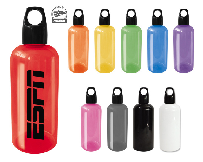 Cilindro de plástico PET con tapa de rosca y asa pequeña. CAP. 500 ml. *BPA FREE.
