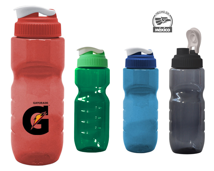 Cilindro de plástico PET con tapa de rosca abatible y boquilla. Su diseño es ergonómico, se ajusta perfectamente a la mano al sostenerlo. CAP. 750 ml. *BPA FREE.