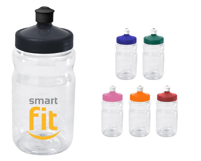 Cilindro de plástico PET con cuerpo transparente y tapa de rosca a color con válvula. CAP. 500 ml. *BPA FREE.