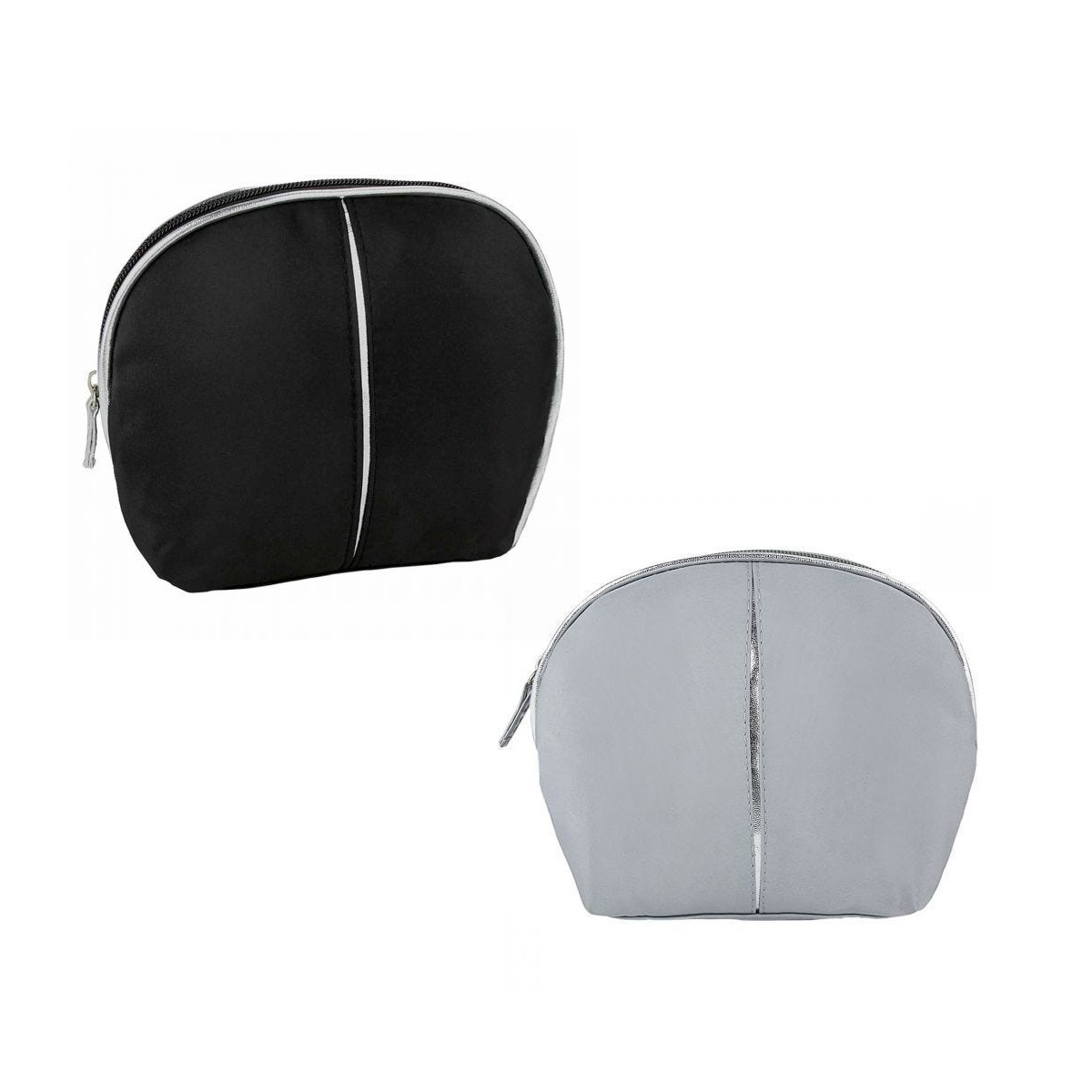 Cosmetiquera de microfibra de color con cierre, bies y línea de adorno en color plata.