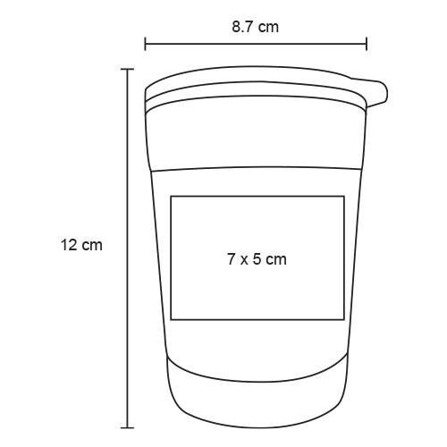 Termo de doble pared con acabado rugoso, exterior de acero inoxidable e interior de plástico y base de bambú. Incluye tapa de cierre a presión.