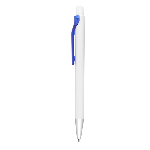 Bolígrafo de plástico con clip traslúcido, punta con detalle de color y mecanismo de click.