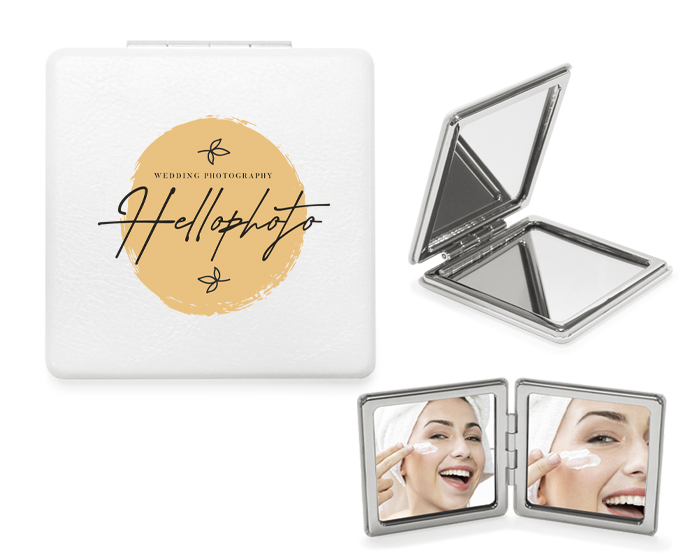 Espejo doble 1X/2X, con cierre magnético, tapas forradas en PU y detalles en cromo.