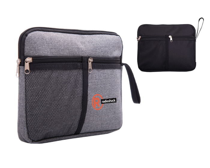 Estuche multiusos con compartimientos, 1 interior y 2 al exterior con cierre. Con asa para trasportar.