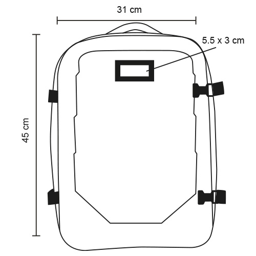 Mochila de carcasa dura con abertura 360, porta laptop de 17.5″, placa, organizadores internos, cuatro broches laterales ajustables, tirantes con broche, respaldo acolchado y cinta carry-on.