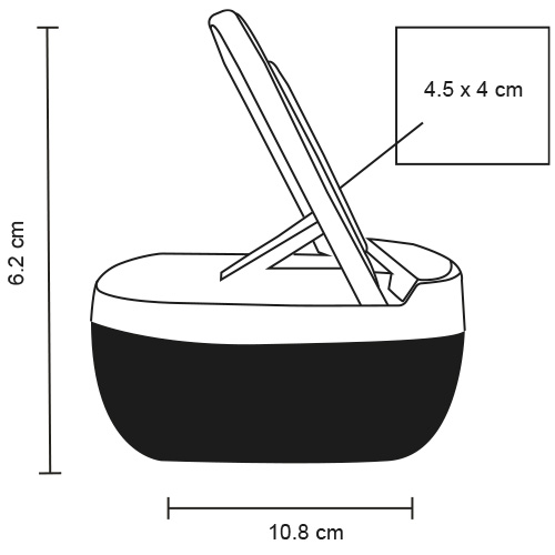 Bocina con bluetooth con controles adelánte/atras, play/pausa y carga tipo C. Cuenta con plataforma retráctil que sirve como cargador wireless y soporte para celular. Destapa en luz.