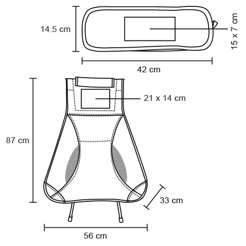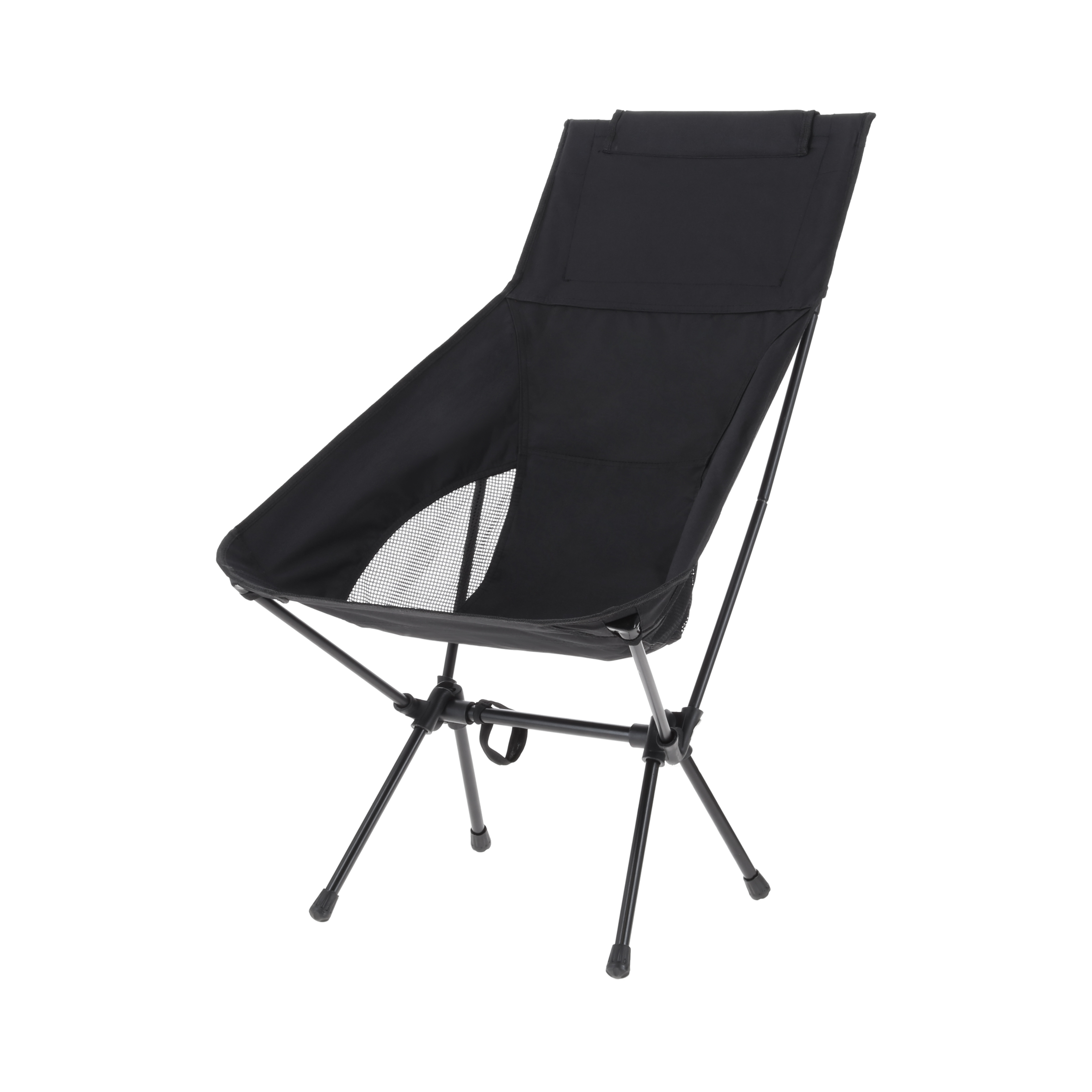 Silla portátil plegable de metal con asiento y respaldo de poliéster. Incluye funda de cierre con asa.
