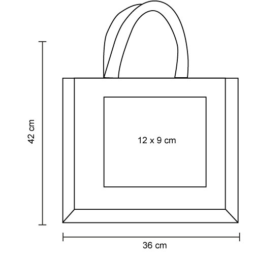 Bolsa de yute con interior laminado, asas y bolsa frontal de algodón de 220 g/m2.