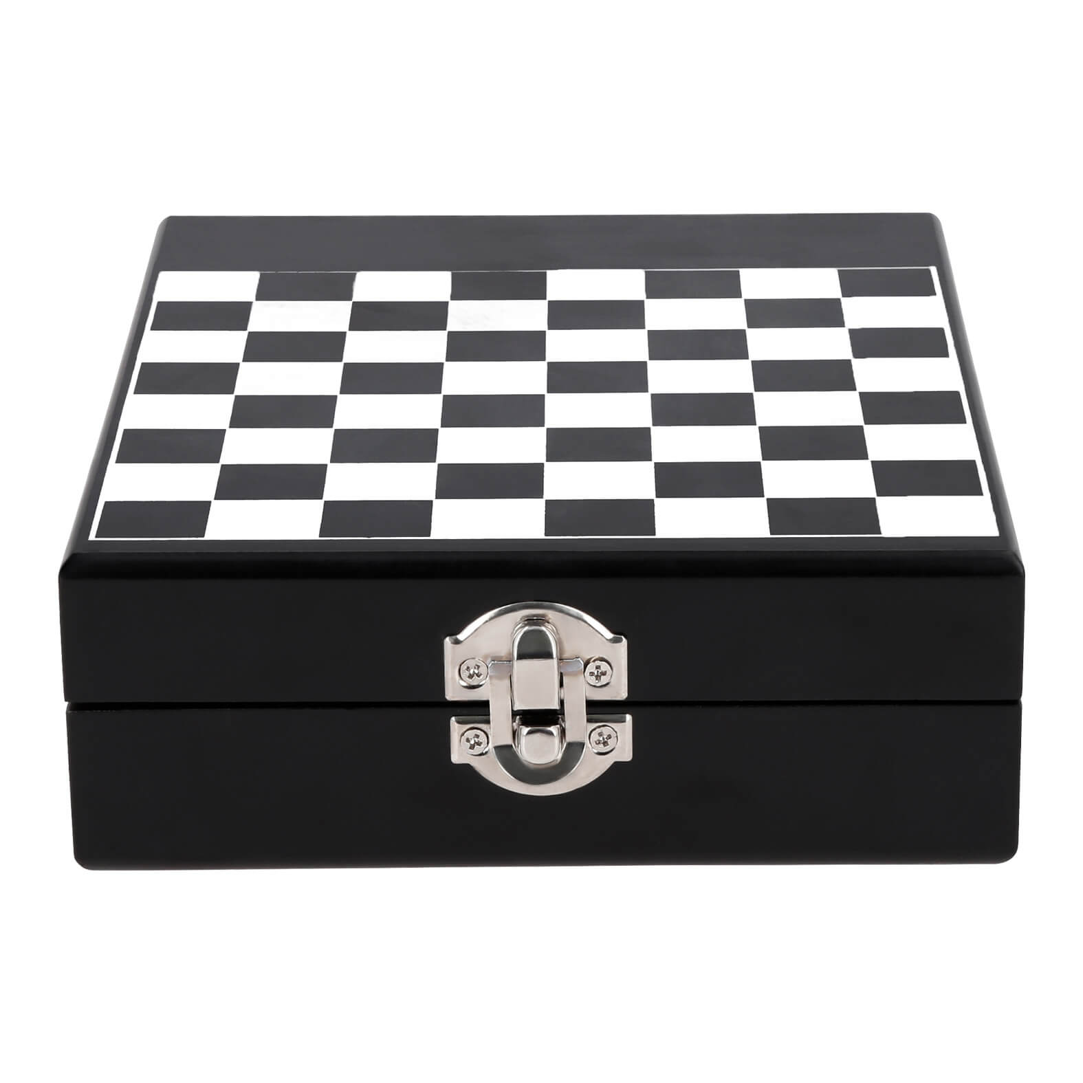 Set de vinos con 4 accesorios: Sacacorchos, boquilla, corta gotas y corta etiquetas. Incluye ajedrez.