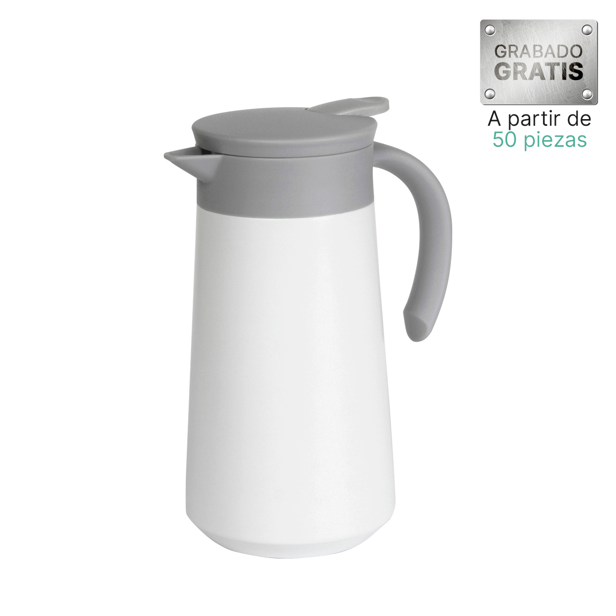 Jarra doble pared de acero inoxidable, tapar y asa de polipropileno. Fabricado en materiales de grado alimenticio, mantiene bebidas calientes por un largo tiempo, no usar en microondas. Capacidad de 800 ml. Incluye caja de cartón individual.