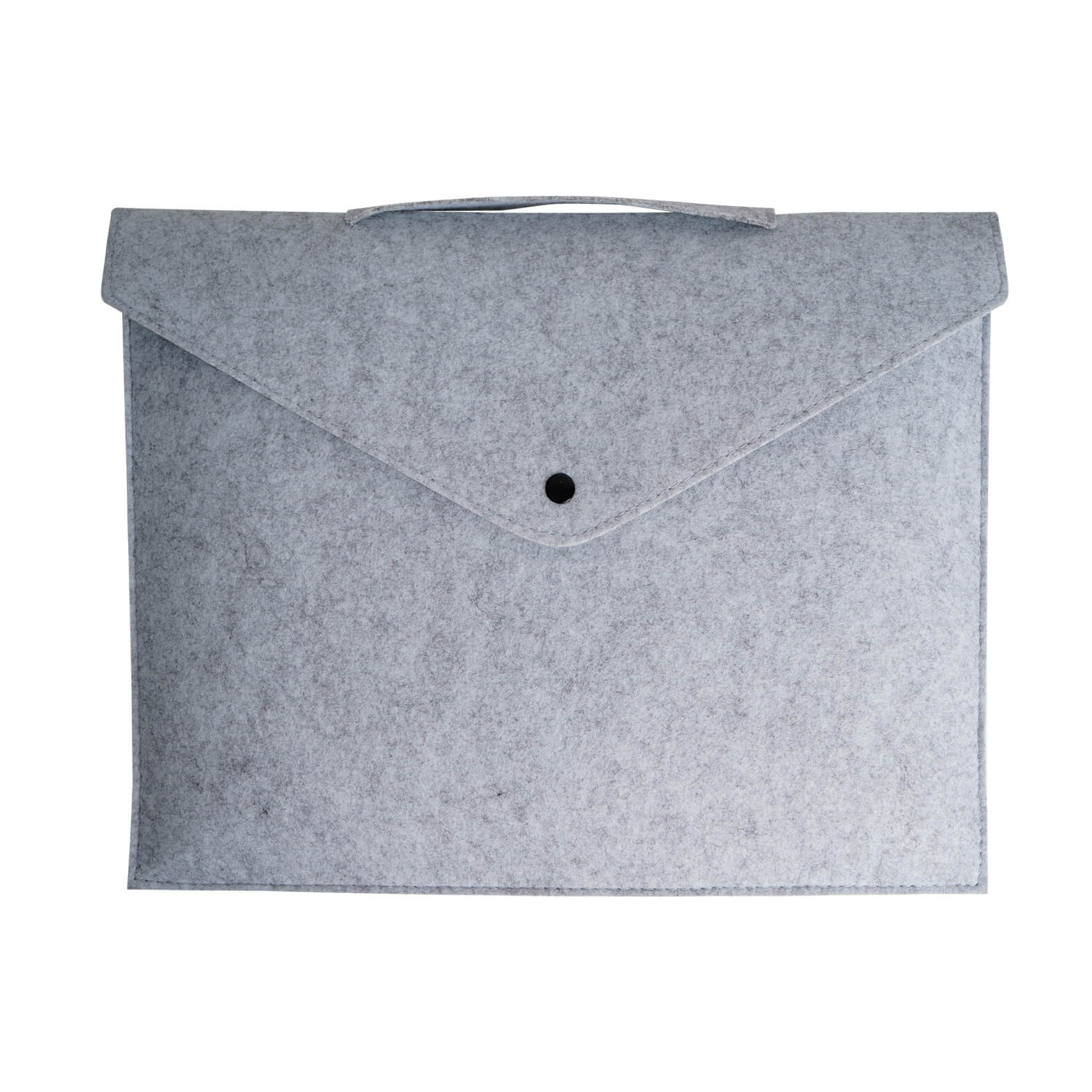 Portafolio de fieltro con un compartimento principal para laptop de hasta 15″ con broche y asas.