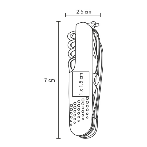 Navaja metálica multiusos con 11 funciones que incluyen: desarmador, tijeras, destapador, navaja, sierras y sacacorchos, cuenta con arillo para usar como llavero y caja de regalo.