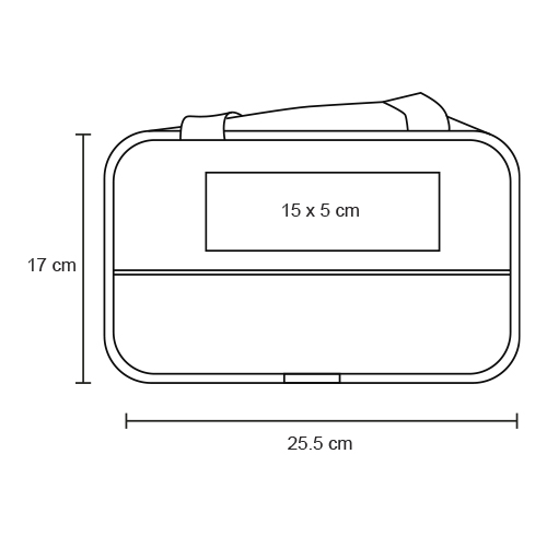 Cosmetiquera de plástico con parte superior transparente, costuras en color rosa, cierre y doble asa.