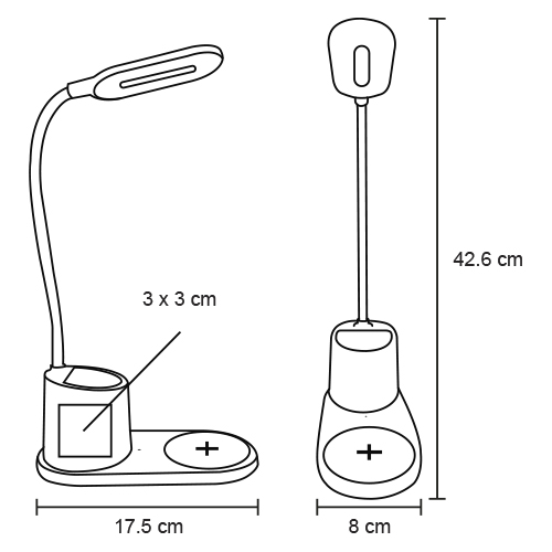 Lámpara para escritorio con organizador y cargador Wireless para smartphones compatibles con tecnología Qi. Incluye cable de carga.