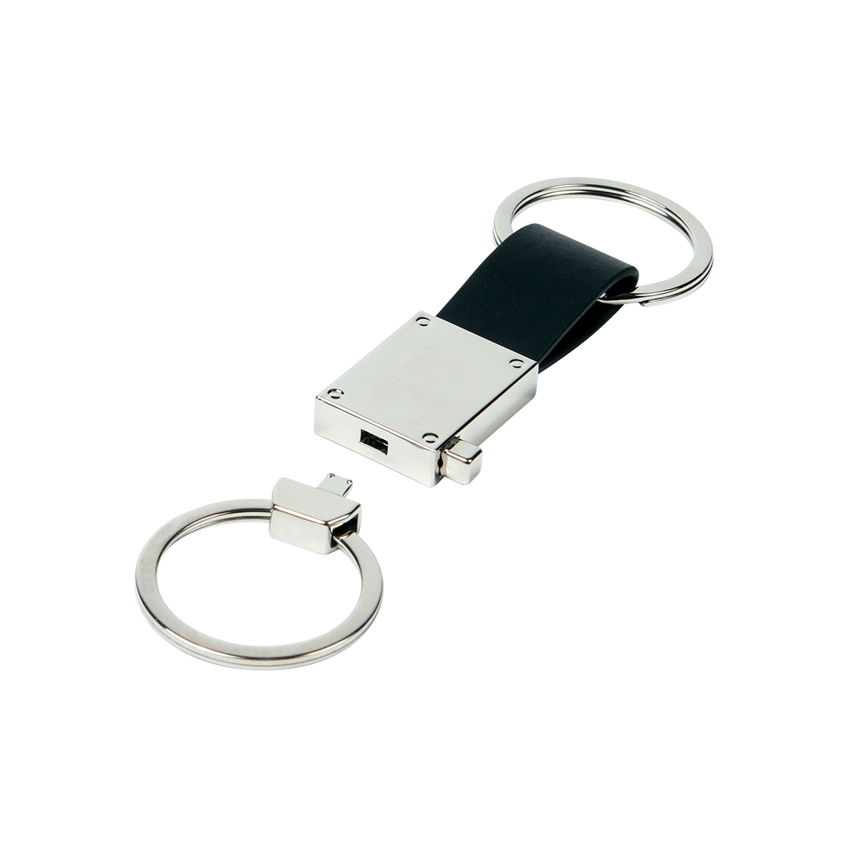 Llavero fabricado en aleación de zinc con correa de curpiel y argolla desprendible.