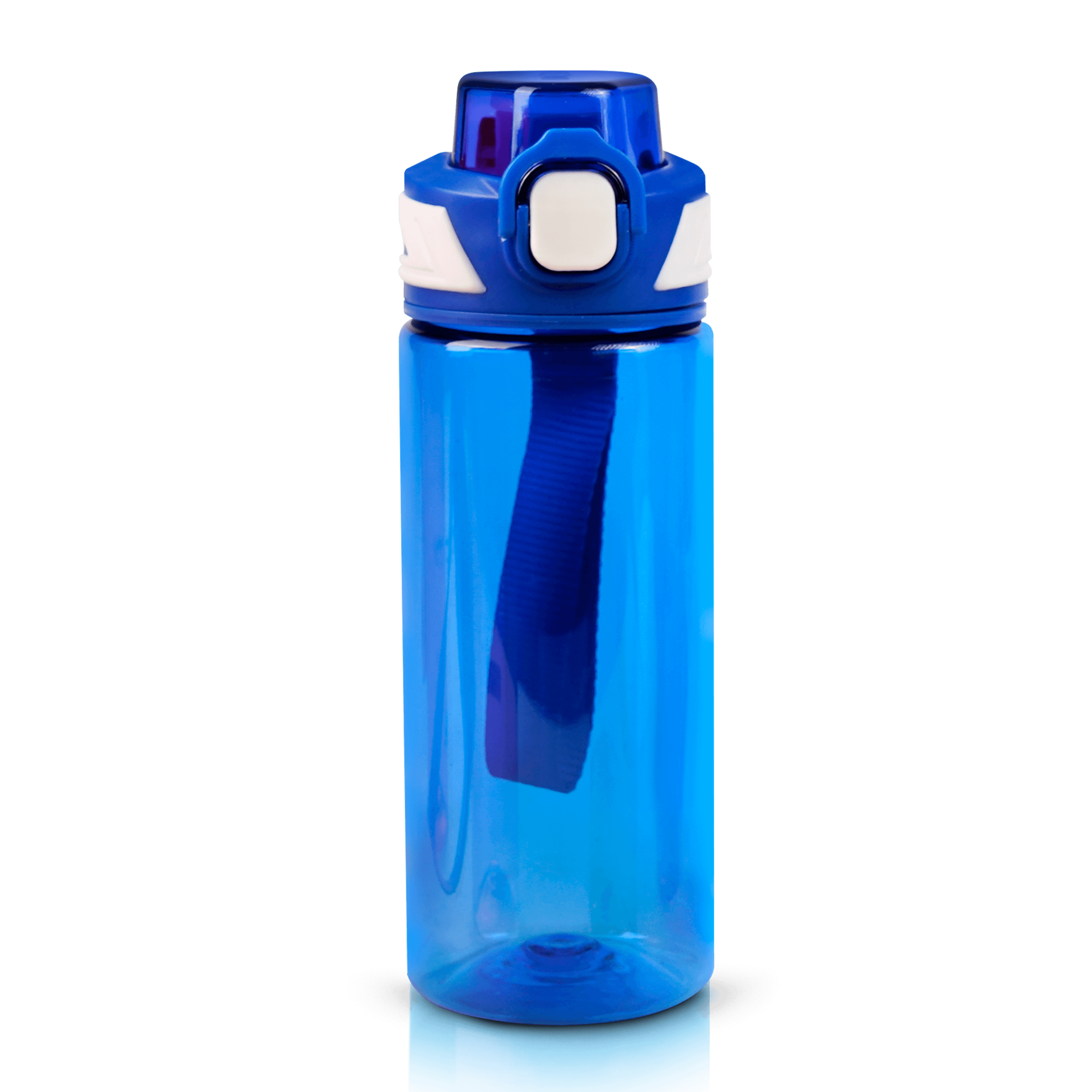 Cilindro de plástico con tapa enroscable, boquilla de seguridad y asa.