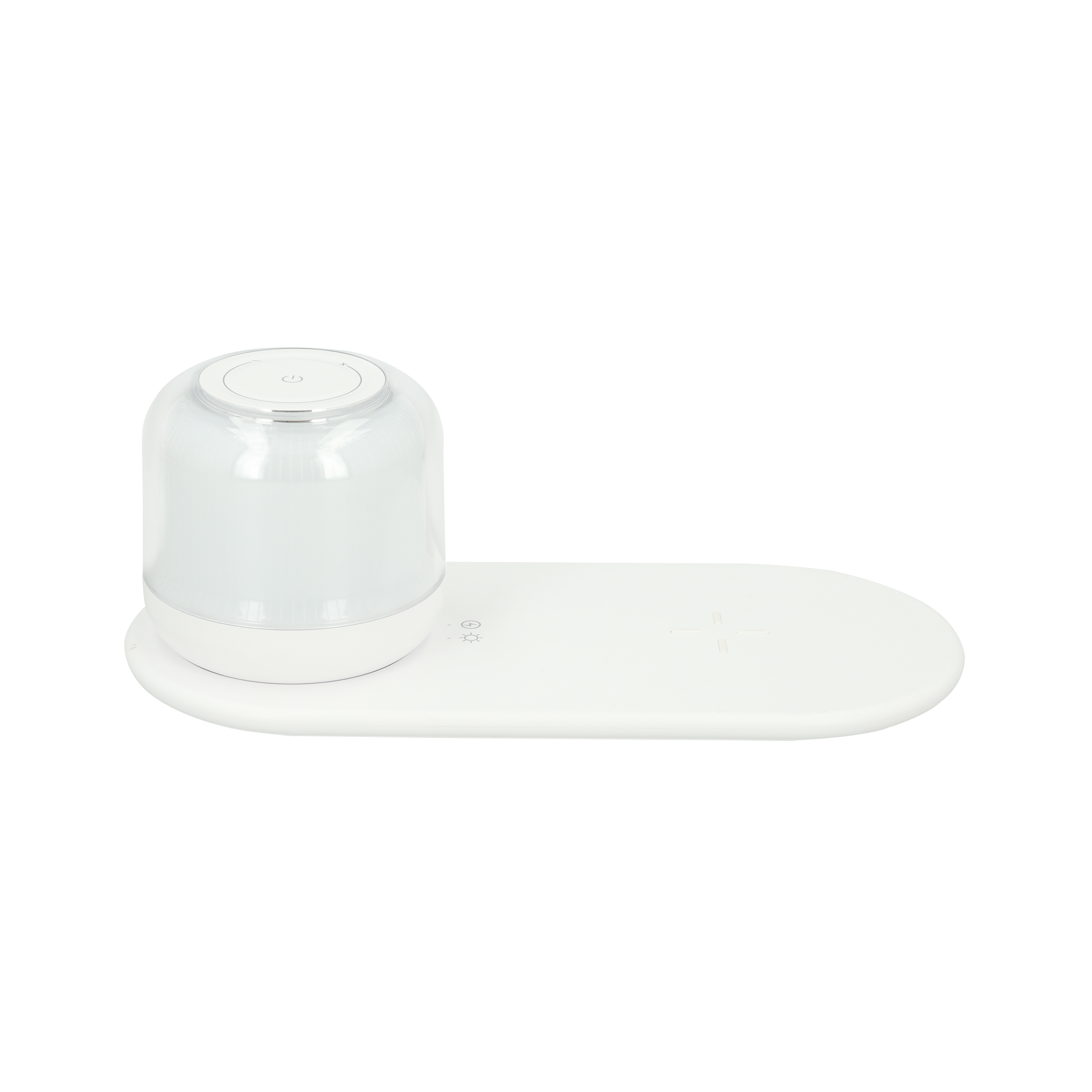 Cargador Wireless con lámpara de luz LED y ajuste de color de 360 grados, con base antiderrapante. Incluye cable de carga tipo C. (Compatible con dispositivos con tecnología Qi).