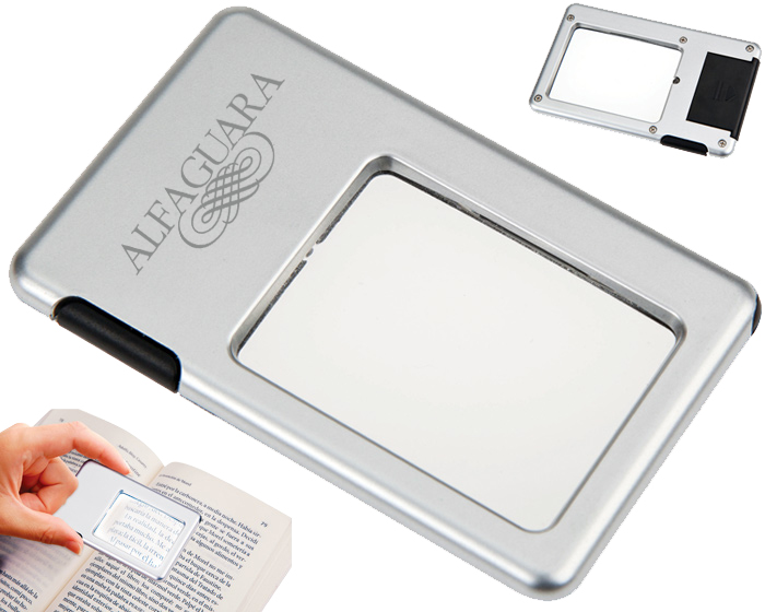 Lupa (3x) con pluma y botón para encendido de luz. Batería incluida. Presentación: caja en color blanco.