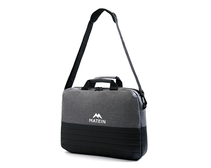 Maletín porta laptop de 15.6 pulgadas con diseño tipo curpiel con interior acolchado y compartimentos para accesorios. Correa larga ajustable y asas. Banda para sujetarse sobre maleta de viaje.