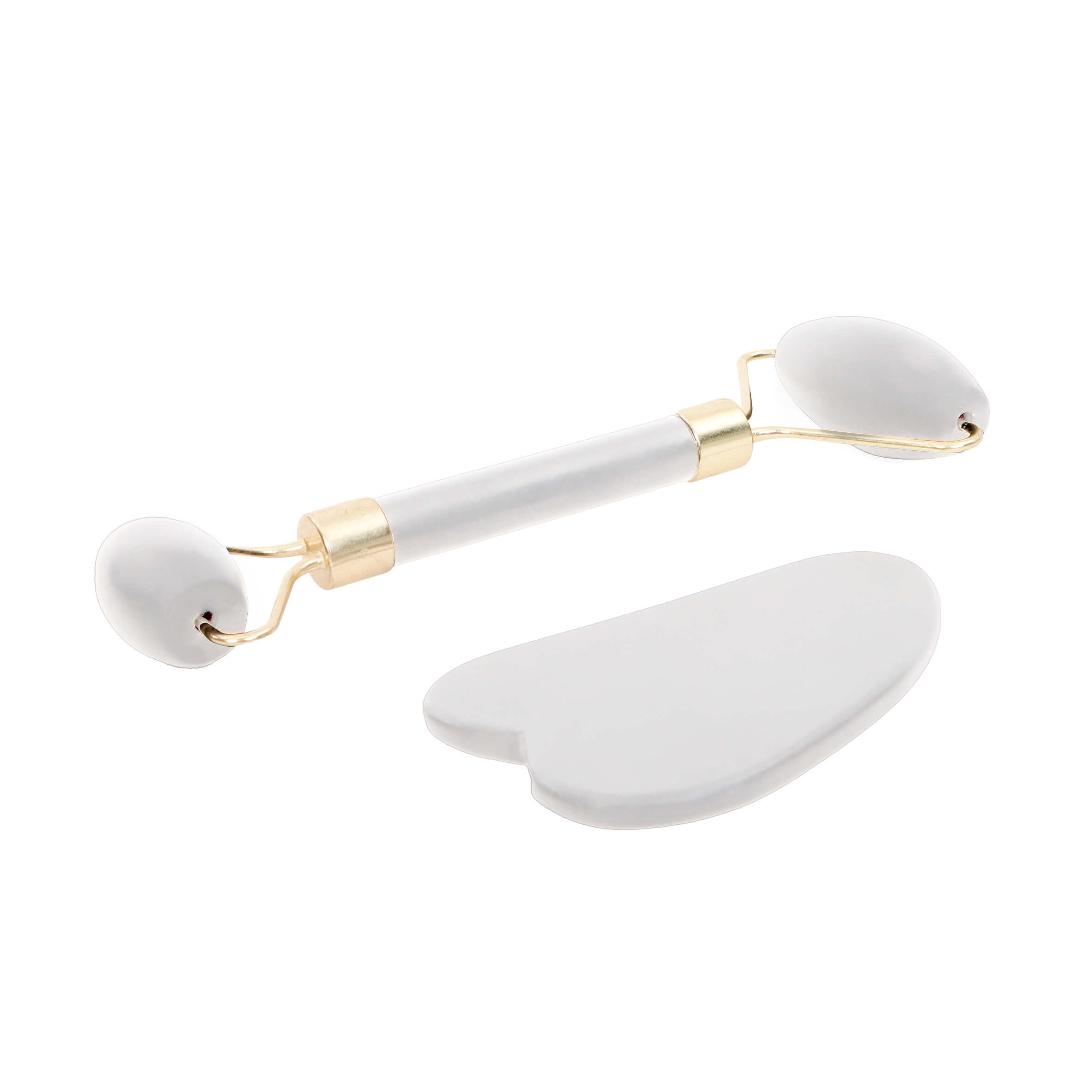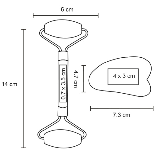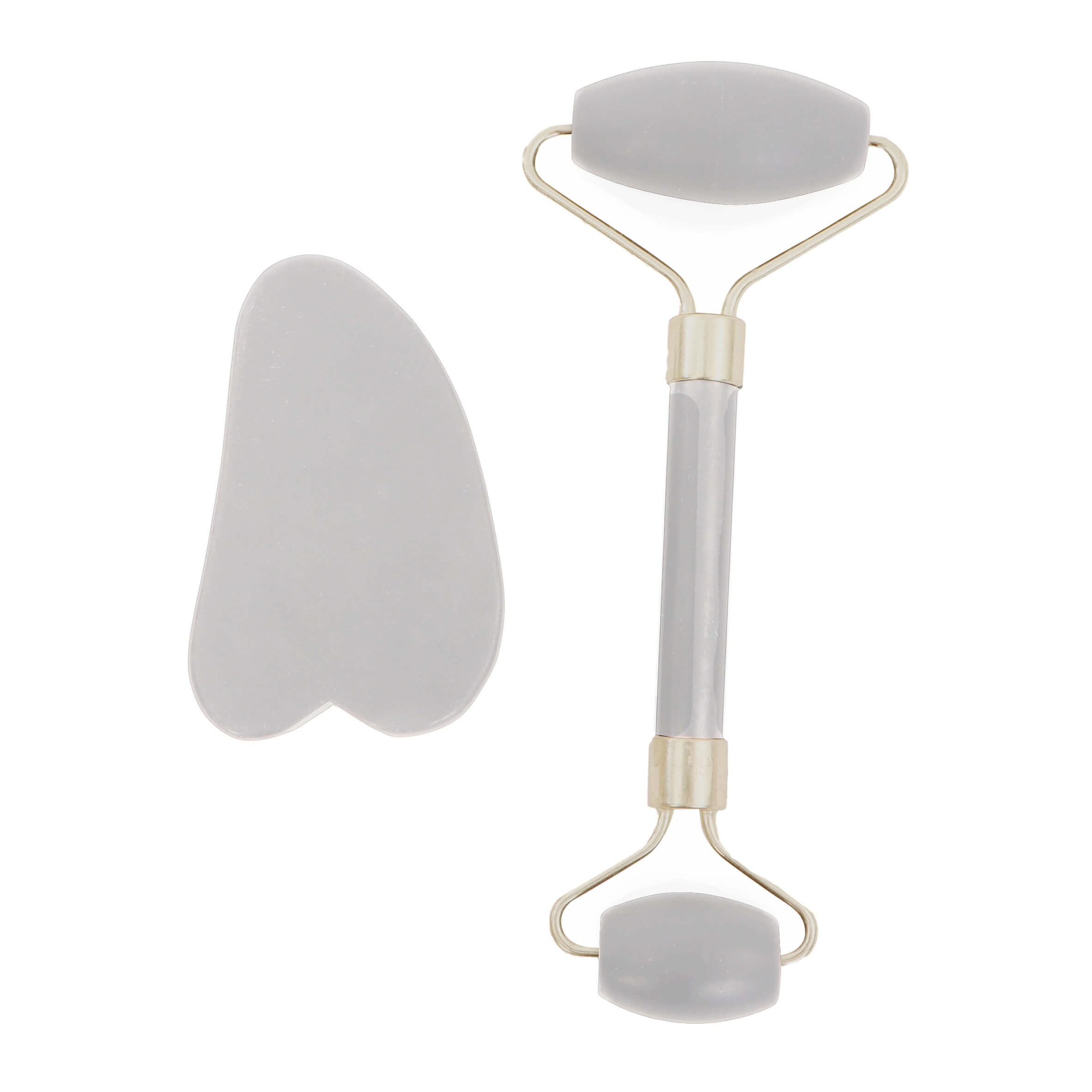 Kit de masajeadores para el rostro que incluye rodillo y piedra gua sha.