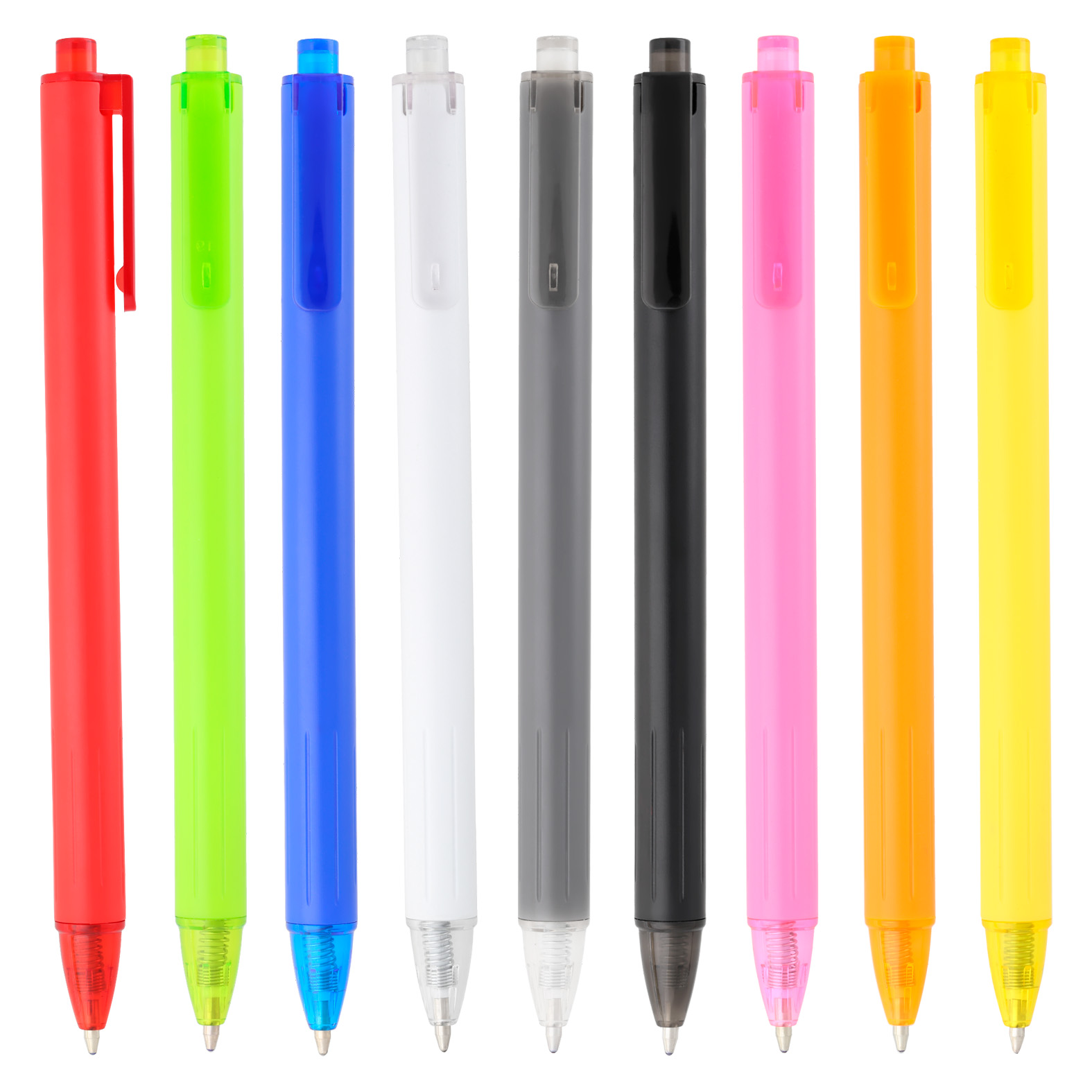 Bolígrafo de plástico color sólido, clip transparente y mecanismo de click.